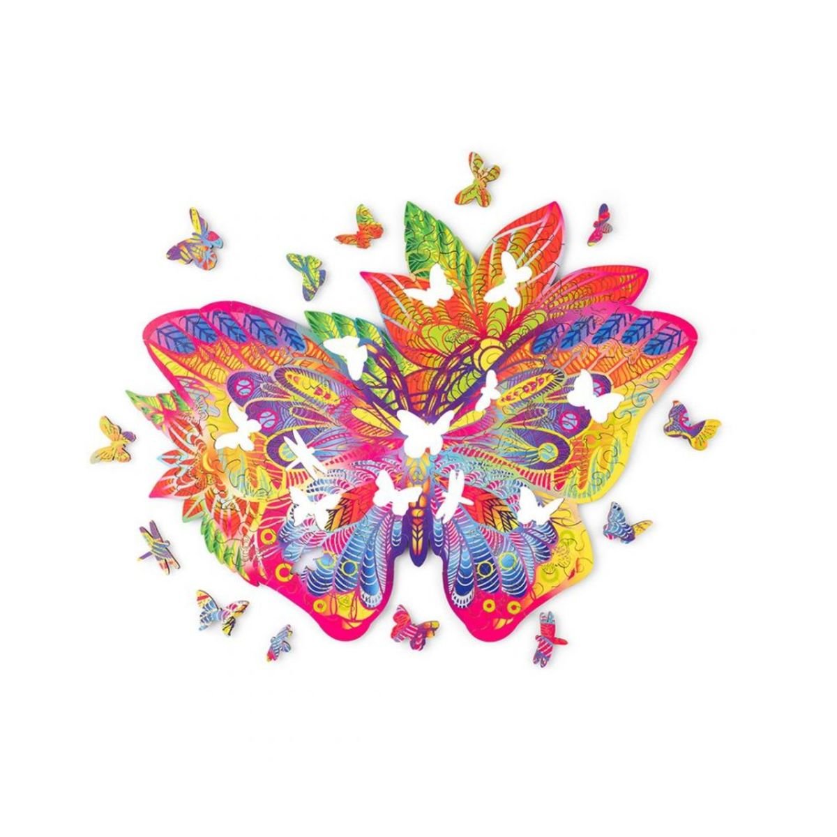 Ein wunderschön gefärbtes Holzpuzzle in Form eines Schmetterlings ist eine großartige Geschenkidee. Die Puzzles bestehen aus 170 Teilen, von denen bis zu 35 die Form eines Schmetterlings oder eines Drachen haben.