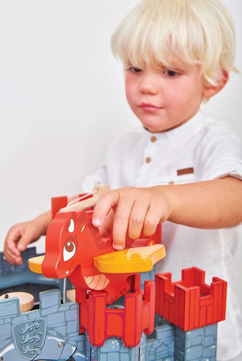 Dieser niedliche Drache ist bereit für alle Abenteuer! Er ist aus massivem Holz gefertigt und in auffälligen Rottönen bemalt. Seine Flügel sind mit einem Gummiband am Körper befestigt, sodass er damit schlagen kann! Der Drache ist mit ungiftigen, wasserbasierten Farben bemalt und aus nachhaltigem Holz hergestellt. Ein plastikfreies Spielzeug, das sich nicht nur für Burgen und Schlösser von Le Toy Van eignet. Hauptmerkmale: ethisch aus nachhaltigem Holz hergestellt, nach den strengsten Standards getestet, bemalt mit ungiftigen, wasserbasierten Farben, inspiriert zu fantasievollem Spiel, fördert die Entwicklung sozialer Fähigkeiten und Sprache. Burgenkollektion: Die Holzburgen von Le Toy Van ermutigen Kinder zu fantasievollem Spiel, sie können damit eigene Abenteuerszenarien erfinden. Jede Burg in der Kollektion hat viele schöne Details, unterstützt Kinder beim Rollenspiel und verbessert ihre Motorik.