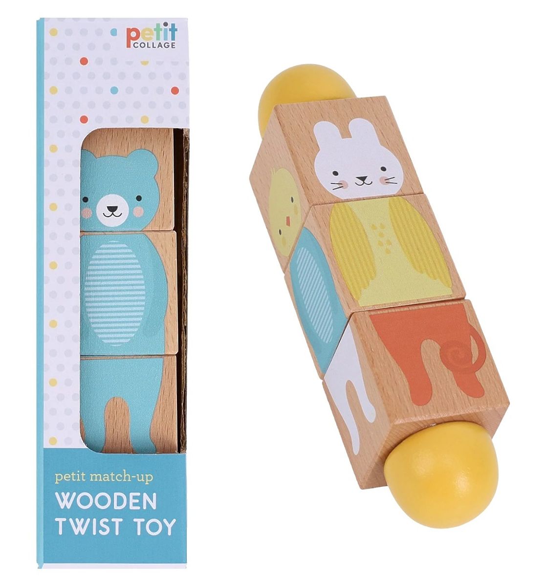 Dank der bunten Illustrationen von vier lächelnden Tierfreunden - Bär, Affe, Küken und Häschen - werden Kinder dieses einfach zu bedienende Spielzeug lieben, das das Lernen durch taktiles Spiel fördert. Es entwickelt feinmotorische Fähigkeiten, Hand-Augen-Koordination und Geschicklichkeit, unterstützt die Farberkennung und Formwahrnehmung und verbessert Problemlösungsfähigkeiten. Das drehbare Spielzeug ist aus FSC®-zertifiziertem Holz gefertigt und die Verpackung besteht zu 75 % aus recycelten Materialien, bedruckt mit pflanzlichen Tinten. Mit wunderschönen Illustrationen in sanften Pastellfarben ist das Petit Match-Up Wooden Twist Toy ein perfektes Geschenk für die Kleinsten. Hauptmerkmale: Holzspielzeug zum Drehen, enthält 3 Würfel aus massivem Holz, hergestellt aus FSC®-zertifiziertem Holz und bedruckt mit ungiftiger, wasserlöslicher Farbe, geeignet ab 1 Jahr.
