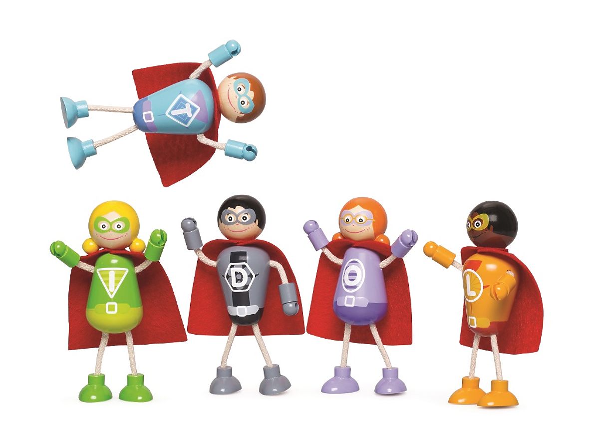 Ist es ein Vogel? Oder ein Flugzeug? Nein, es ist ein Team von fünf Superhelden! Sie sind bereit, die Welt in ihren Uniformen mit Maske und Umhang zu retten. Sie haben biegsame und verstellbare obere und untere Gliedmaßen, und jede Figur kann eigenständig stehen oder sitzen. Das Set umfasst sowohl weibliche als auch männliche Figuren. Eine großartige Möglichkeit, Kinder zu kreativem und fantasievollem Spiel zu ermutigen. Es fördert die Hand-Auge-Koordination, Feinmotorik und Geschicklichkeit. Hergestellt aus hochwertigen Materialien aus verantwortungsvollen Quellen. Entspricht der europäischen Sicherheitsnorm. Hauptmerkmale: 5 Superfiguren mit biegsamen und verstellbaren Gliedmaßen, unterstützt kreatives und fantasievolles Spiel, fördert Feinmotorik und Geschicklichkeit