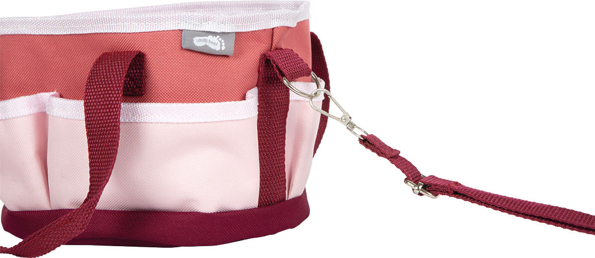 Tasche mit Zubehör zur Reinigung und Pflege von Pferden. Sie ist geeignet für alle Kinder, die Pferde lieben. Die Tasche ist robust, praktisch und ausreichend geräumig, um die gesamte Ausrüstung zu verstauen. Die Pferdepflege ist Teil der täglichen Routine eines jeden Pferdefans und Pferde lieben es, gebürstet zu werden. Die Tasche mit Zubehör ist aus hochwertigen Materialien gefertigt und bietet alles, was Sie brauchen, direkt zur Hand, auch wenn Sie unterwegs sind. Zu den Accessoires gehören eine Bürste, ein Kamm, ein Hufkratzer und ein Mähnenkamm, die alle in das geräumige Innere der Tasche und in die kleine Seitentasche passen. Und natürlich dürfen ein Holzapfel und eine Karotte nicht fehlen. Das Set wird mit einem Turnierband geliefert, das die Kinder am Kopfhalfter ihres Pferdes oder an ihrer eigenen Kleidung befestigen können. Die Reinigungsutensilien sind perfekt auf die Bedürfnisse junger Pferdefans abgestimmt, sodass junge Reiter ihrer Fantasie beim Spielen freien Lauf lassen können. Der bequeme Kordelzug ermöglicht es, die Tasche weit zu öffnen, aber auch vollständig zu schließen. Diese Kindertasche kann an beiden Griffen oder mit dem verstellbaren Schultergurt getragen werden. Mit diesem Pflege-Set können Kinder sich um ihr Lieblingspferd kümmern wie die Profis. Hauptmerkmale: unverzichtbares Zubehör in der Tasche für jeden Pferdefan, verstellbarer Schultergurt, umfassendes Set