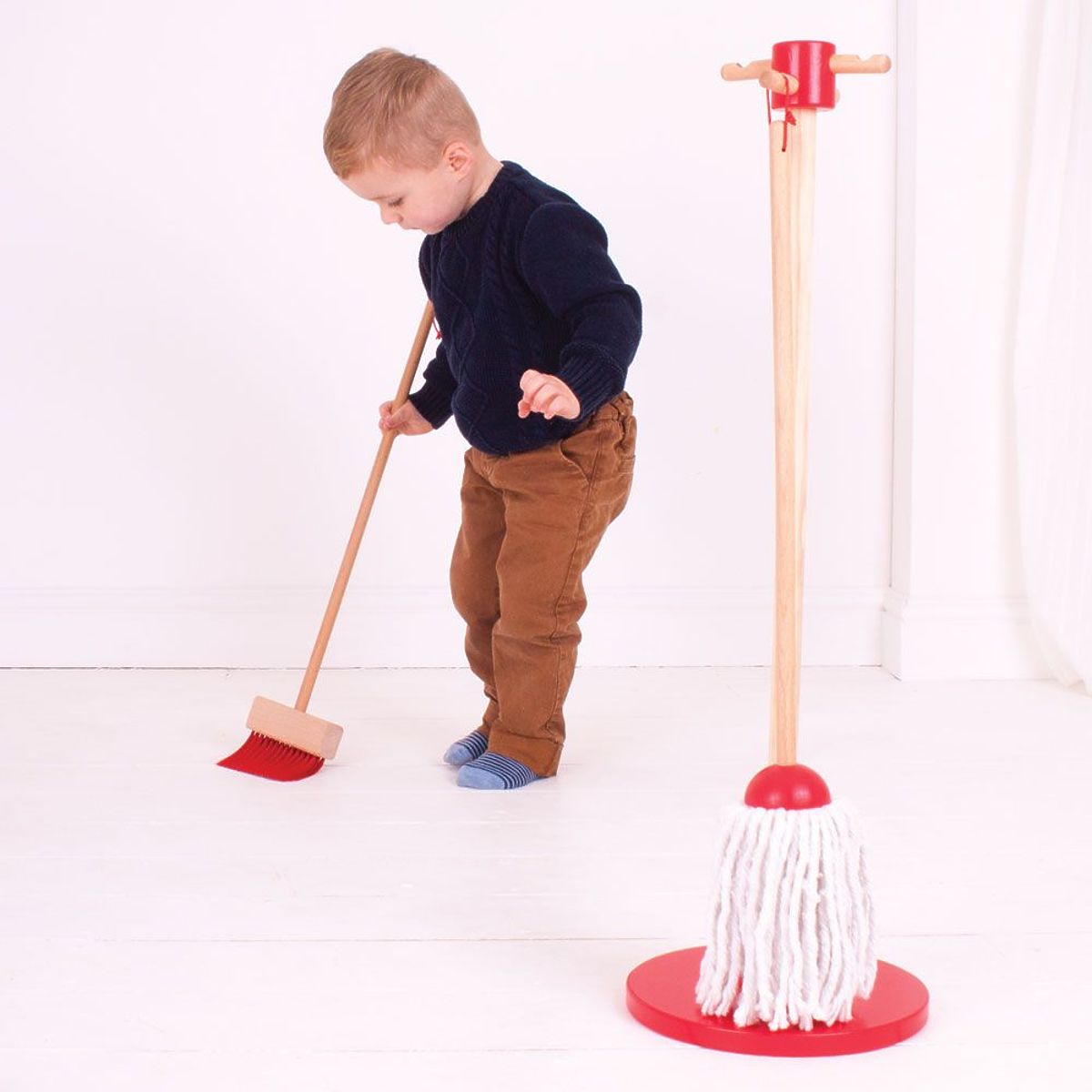 Kleine Kinder können fantasievolles Spielen genießen und gleichzeitig den Erwachsenen beim Aufräumen helfen mit diesem kompakten Holz-Reinigungsset. Es enthält einen Mopp, einen Besen, eine Kehrschaufel und eine Bürste, alles wird auf einem Holzständer für einfache Lagerung geliefert. Hergestellt aus hochwertigen, verantwortungsvoll bezogenen Materialien. Entspricht den aktuellen europäischen Sicherheitsnormen. Besteht aus 5 Teilen. Hauptmerkmale: enthält 5 Teile, Aufbewahrung in einem praktischen Ständer, hilft bei der Koordination der Bewegungen und realistischem Rollenspiel.