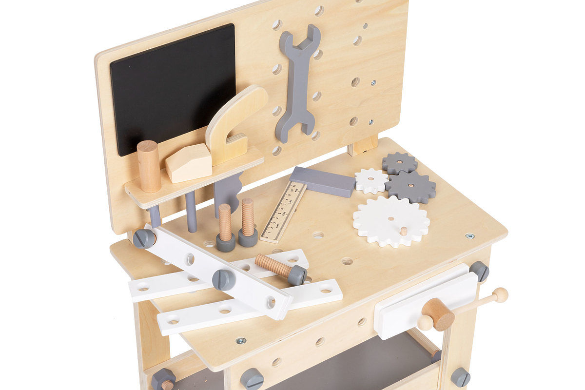 Jedes Kind ahmt gerne das Verhalten von Erwachsenen nach. Das Spielen mit echten Werkzeugen ist wahrscheinlich nicht die beste Idee, daher kann eine Alternative die ECOTOYS-Holzwerkstatt mit reichhaltiger Ausstattung sein, um die viele Heimwerker sie beneiden können.