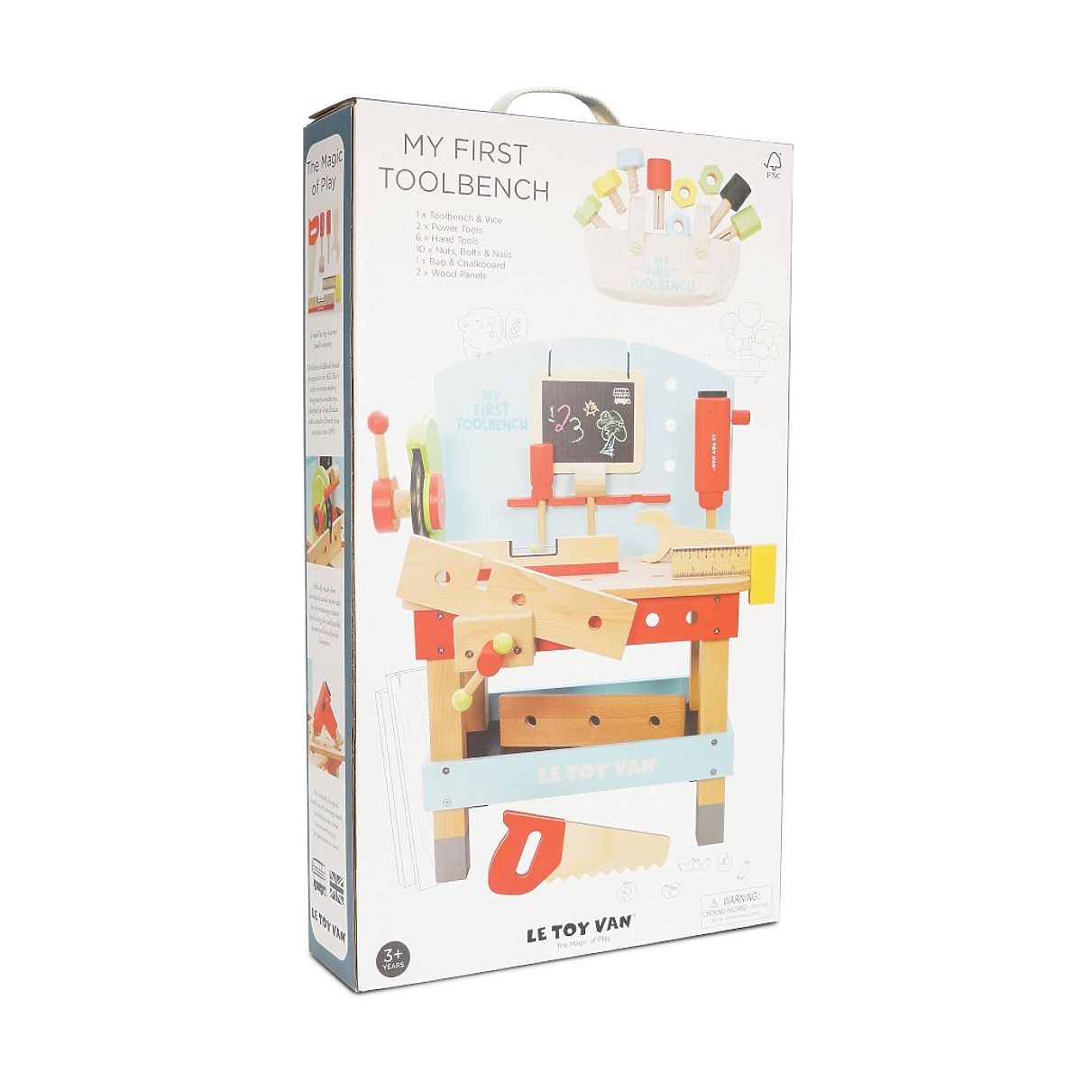 Bereiten Sie sich auf handwerklichen Spaß mit dieser hölzernen Werkbank mit Werkzeug vor. Das umfangreiche Set lehrt Kinder viel über die Arbeit in der Werkstatt und handwerkliche Fähigkeiten. Die Werkbank und das Zubehör sind aus robustem Holz gefertigt und halten wirklich lange. Zur Ausstattung gehören eine Bohrmaschine, eine Kreissäge, ein Schraubstock, eine Säge, ein Hammer, ein Schraubendreher, eine Wasserwaage, ein Winkelmaß, ein Schlüssel und eine Kreidetafel. Kinder werden beim Rollenspiel viel Spaß haben. Die Werkbank hat unten ein Regal, das als Stauraum dient. In zwei perforierte Holzplatten können Schrauben mit Muttern eingeschraubt werden. Spielzeug mit ZweckAlle Spielzeuge von Le Toy Van sind darauf ausgelegt, lange zu halten. Sie werden mit Liebe von erfahrenen Handwerkern unter Verwendung ethischer Praktiken und nachhaltiger Materialien entworfen, die freundlicher zu unserem Planeten sind. Hauptmerkmale: ethisch aus nachhaltigem FSC-Holz hergestelltgetestet nach den strengsten Standardsmit ungiftigen, wasserbasierten Farben bemaltregt zu fantasievollem Spiel anentwickelt kognitive Fähigkeiten Auszeichnungen des Spielzeugs:Good Toy Guide Approved Autos & Bauten: Die Bau- und Motorik-Kollektion von Le Toy Van, die viele Auszeichnungen gewonnen hat. Genauer gesagt, bisher über 15 Auszeichnungen für fantasievolle Autos und Bauspielzeuge. Sie fördern die kindliche Fantasie, sind ideal für fantasievolles Spiel, entwickeln Kreativität und verbessern spielerisch die Hand-Auge-Koordination der Kinder. Die Marke und das FSC®-Zertifikat (Forest Stewardship Council) garantieren, dass das Holz, aus dem das Produkt hergestellt wurde, nicht illegal geschlagen wurde und aus Wäldern stammt, die schonend oder naturnah bewirtschaftet werden, wobei strenge Umwelt- und Sozialanforderungen eingehalten werden. Das FSC®-Zeichen auf dem Produkt bedeutet, dass Sie durch Ihren Kauf dazu beitragen, Wälder zu schützen und eine schonende, verantwortungsvolle oder naturnahe Bewirtschaftung zu unterstützen, durch die unsere Wälder stabiler, gesünder und natürlicher in ihrer Artenzusammensetzung sind und besser den negativen Folgen des Klimawandels widerstehen.