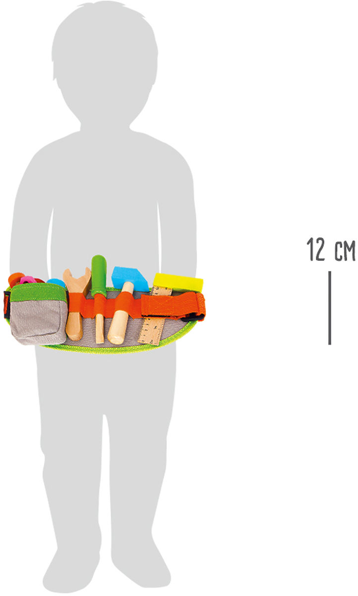 Ein praktischer Werkzeuggürtel mit verstellbarer Länge ist ein großartiger Helfer für den kleinen Handwerker. Das Set enthält eine Vielzahl von farbig lackierten Holzwerkzeugen – Hammer, Schraubenzieher, Schraubenschlüssel, Winkel, Schrauben und Muttern, die einfach an einer Schlaufe eingehängt oder in die kleine Tasche gesteckt werden können. Gibt es etwas zu reparieren oder zu renovieren? Hauptmerkmale: Gürtel und 12 Stück Holzwerkzeug, verstellbarer Nylon-Gürtel (41 – 103 cm), trainiert Feinmotorik und Rollenspiele