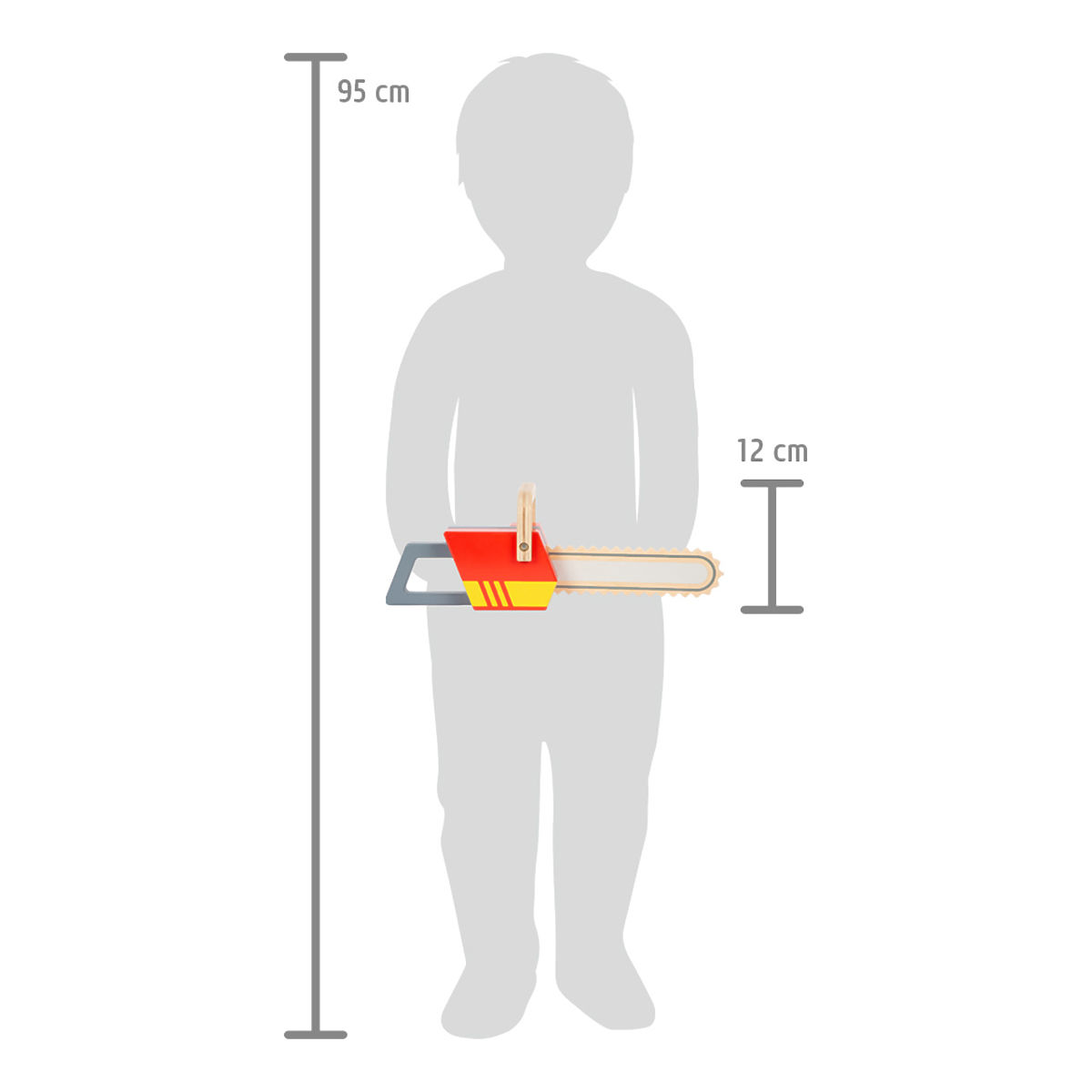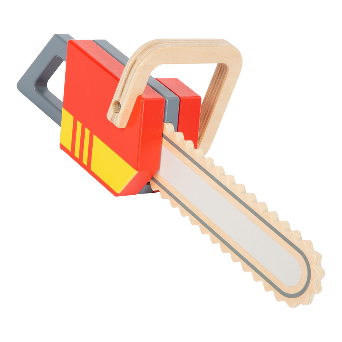 Motorsäge mit Feuerwehrthema. Mit dieser robusten Motorsäge aus Holz für Kinder steht dem realistischen Feuerwehrspiel nichts mehr im Wege. Der große Griff ist leicht für Kinderhände zu greifen. Die Säge verfügt außerdem über ein Aufzieh-Starterseil mit Geräusch und Vibrationen. Hauptmerkmale: aus robustem Holz mit Feuerwehrthema, Starterseil mit Geräusch und Vibrationen, perfektes Zubehör für den Feuerwehr-Rucksack (12361)