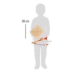 Maße Armbrust: 51 x 50 x 11 cm Maße Ziel: 30 x 30 x 0,5 cm Alter: 5+ Material: Holz, Metall