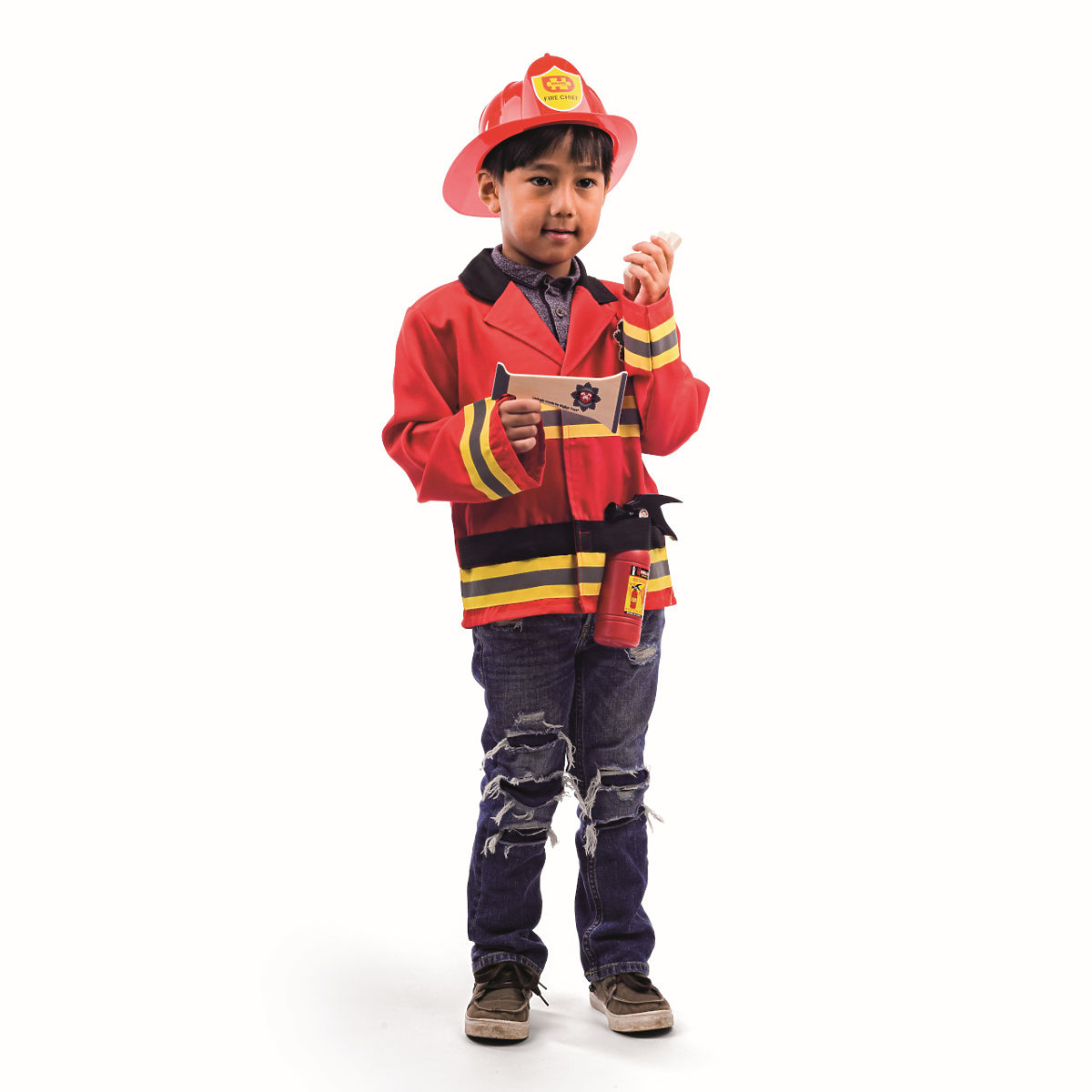 Kleine Helden können in diesem Feuerwehrmann-Kostüm für Kinder zur Rettung eilen. Ob es darum geht, Brände zu löschen oder Katzen von Bäumen zu retten, die Möglichkeiten für Rollenspiele sind endlos. Dieses Kinder-Set enthält eine leuchtend rote Feuerwehrjacke mit gestreiften Ärmeln und Abzeichen, einen Feuerlöscher aus Holz, ein Funkgerät und ein Megafon. Der Klettverschluss ermöglicht ein einfaches An- und Ausziehen. Der Helm ist verstellbar, Kopfumfang 49-55 cm. Das Kostüm wurde nach den neuesten EN71-Vorschriften getestet. Hauptmerkmale: inklusive Zubehör, verstellbarer Helm, geeignet für Kinder von 3 bis 5 Jahren, fantasievolle und detaillierte Verarbeitung