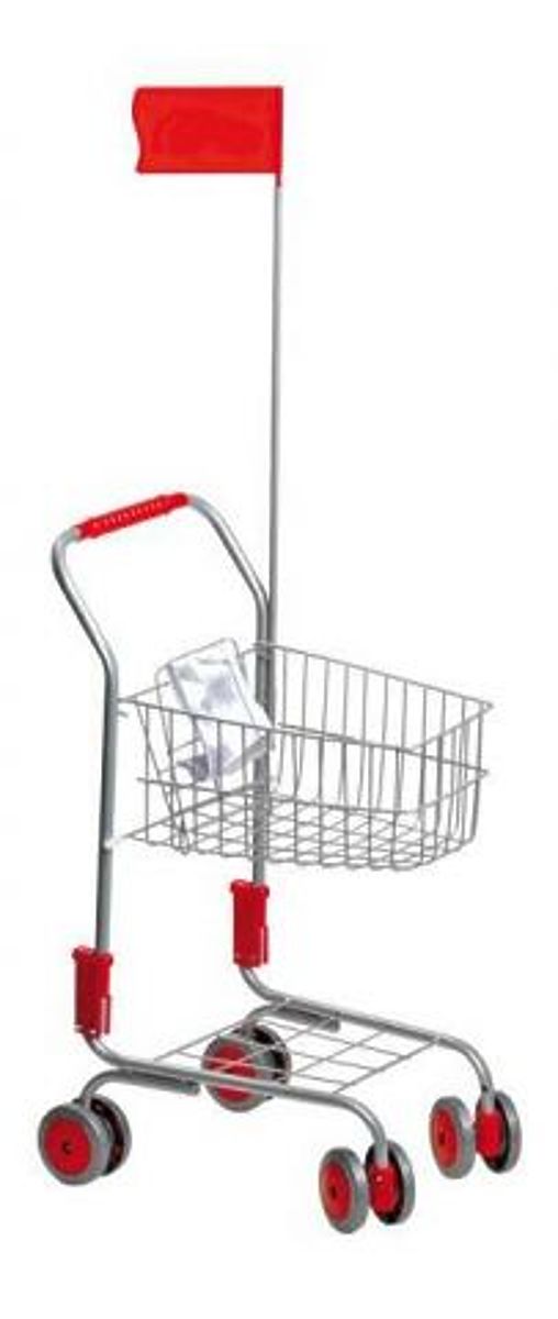Beschädigte Verpackung. Neue Ware ohne Mängel. Mit diesem Einkaufswagen wird das Einkaufen für Kinder sehr unterhaltsam. Dank des silbernen Designs dieses klassischen Einkaufswagens machen Sie einen großartigen Eindruck auf junge Käufer. Er wird mit roten Akzenten an den Rädern, dem Griff, dem Rahmen, einer roten Fahne und einem klappbaren Sitz für Puppen geliefert. Die Vorderräder können sich um 360 Grad drehen, sodass dieser Einkaufswagen leicht zu manövrieren ist. Mit diesem Einkaufswagen können auch die kleinsten Kinder ihre Eltern nachahmen und genauso wie Erwachsene einkaufen gehen. Der Korb bietet ausreichend Platz zur Aufbewahrung von Lebensmitteln und Spielzeug und ist somit die perfekte Ergänzung für Spielgeschäfte. Hauptmerkmale: um 360 Grad drehbare Vorderräder, Griffhöhe 60 cm, einfache Handhabung