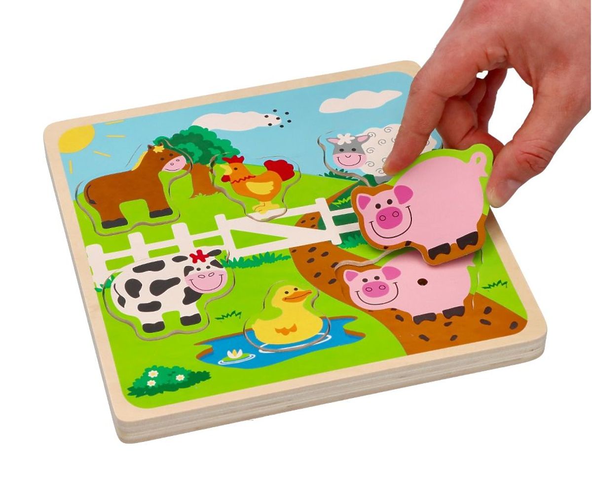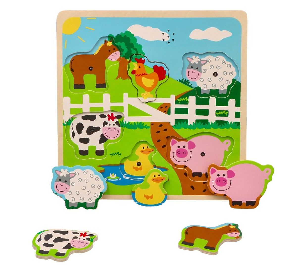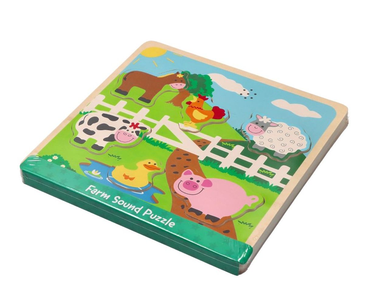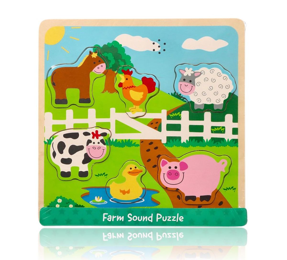 Hilfst du den Bauernhoftieren, ihren Platz zu finden? Wir bieten ein brandneues Holz-Soundpuzzle mit Bauernhoftieren an. Das Kind passt beim Spielen die Teile in die leeren Stellen ein. Ein Geräusch ertönt, wenn das Teil an der richtigen Stelle platziert wird.