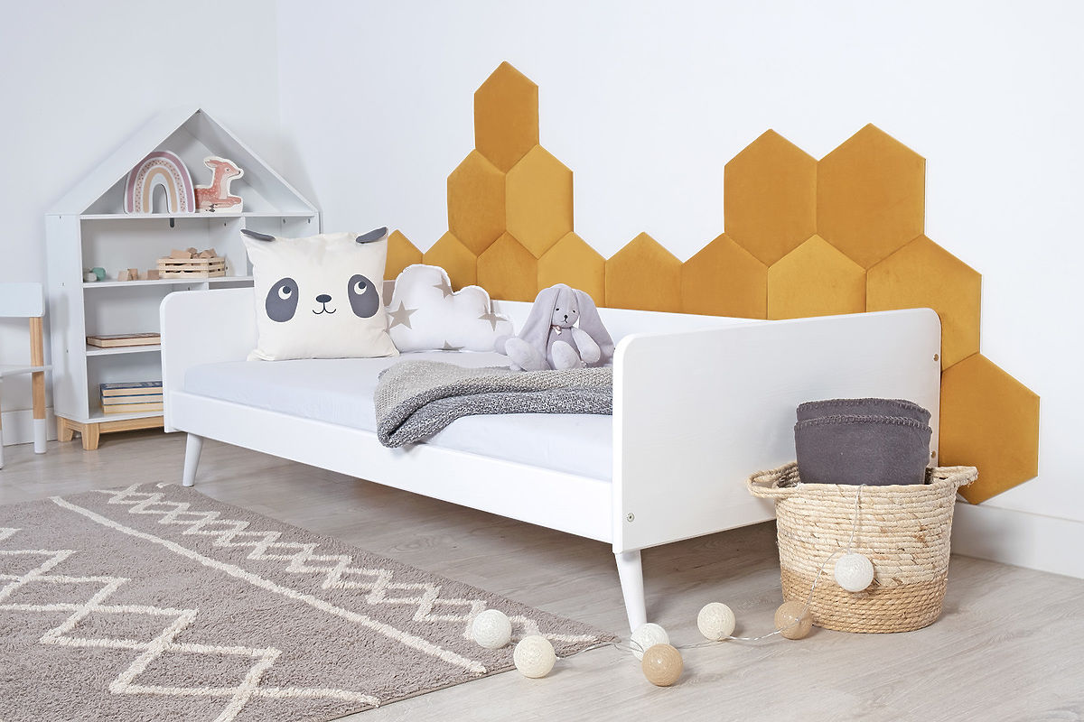Gepolsterte Paneele in Honigfarbe sind in zwei verschiedenen Größen erhältlich: