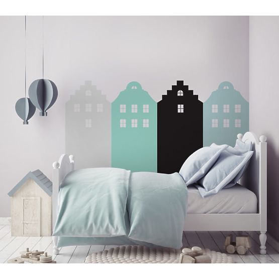 Schöne und einfallsreiche Dekoration an der Wand pokjíčku Kinder. Dekorationen dient auch als Schutzwände. Es gibt vier verschiedene Aufkleber in der Form des Hauses, die völlig unabhängig voneinander an die Wand geklebt werden kann und nach Ihren Vorstellungen. Der große Vorteil dieser Dekoration ist auch, dass die schwarz auf das Haus, Kinder eine klassische weiße Kreide zeichnen und damit ihre Fantasie entwickeln. Etiketten sind fest angestellt. Zur Aufrechterhaltung ist gelegentlich mit einem feuchten Tuch abwischen.