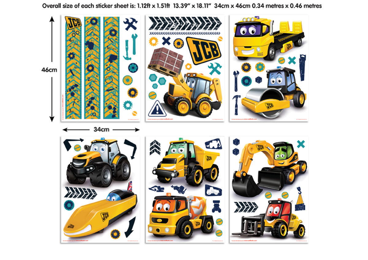 Das Set enthält 65 Aufkleber mit den Motiven der Bagger, welche allen kleinen Jungs gefallen werden. In jedem Set befindet sich auch ein Metermaß.