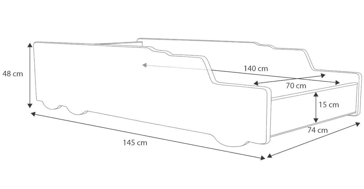 Das Bett RIKO ist nicht nur ein Schlafplatz – es ist eine kreative Abenteuerbasis, die mit dem Kind wächst. Die robuste Konstruktion aus zertifizierter Möbelplatte, verstärkt mit PVC-Kanten, garantiert Stabilität auch bei den wildesten Spielen. Ergonomie ist ein weiterer Pluspunkt – das FLEX-System mit flexiblen Latten unter der Matratze passt sich den Bewegungen des Kindes an, sorgt für gesunden Schlaf und eine korrekte Körperhaltung. Das universelle Design ermöglicht es, dass das Bett sowohl zu minimalistischen als auch zu märchenhaft bunten Arrangements passt, und realistische Details – wie "Räder" eines Monstertrucks, "Leiter" eines Feuerwehrautos oder "Fenster" einer Rakete – versetzen das Kind in eine Fantasiewelt. Dank einer Tragfähigkeit von bis zu 110 kg dient das Möbelstück über Jahre hinweg, und die dynamischen Farben und der widerstandsfähige laminierte Druck (abrieb- und schmutzresistent) bewahren die Frische des Aussehens. Es ist eine Kombination aus sicherem Ruheraum, Spielplatz und Dekoration, die das Zimmer belebt!