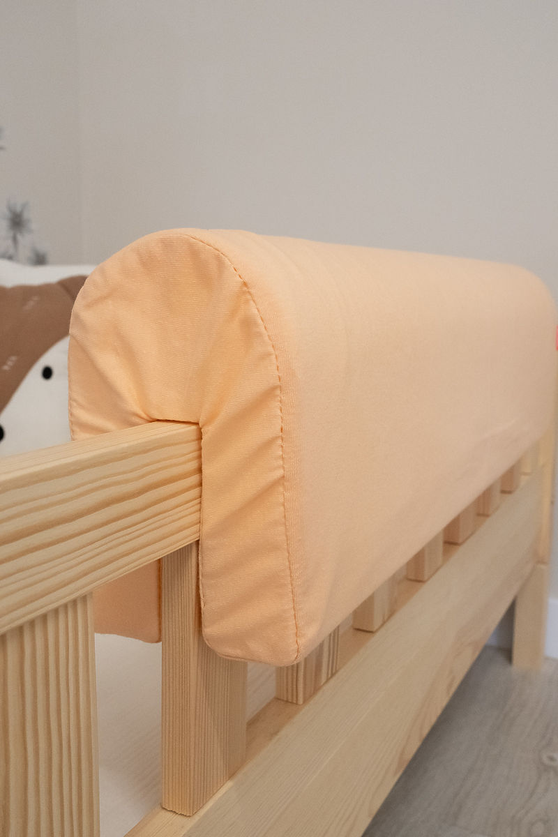 Weich, sicher und schön. So ist der pfirsichfarbene Bettgitter-Schoner Ourbaby, der eine großartige Ergänzung für jedes Kinderzimmer darstellt. Der Schoner besteht aus hochwertigem Polyurethanschaum und der Bezug aus weichem und angenehmem Jersey-Stoff. Er ist in drei Größen erhältlich und passt sich somit perfekt an Betten in jeder Größe an.