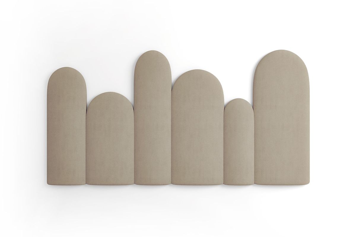 Satz gepolsterter Paneele ist eine originelle Lösung zur Belebung des Kinderzimmers oder Schlafzimmers. Enthält 6 Module mit abgerundeter Oberkante, die an einen Zaun erinnern und beliebig kombiniert werden können, um ein eigenes Arrangement an der Wand zu schaffen. Die Paneele werden mit Fokus auf Qualität, Sicherheit und Komfort hergestellt. Die graue Ausführung wirkt universell und lässt sich leicht mit anderen Möbeln und Accessoires kombinieren.