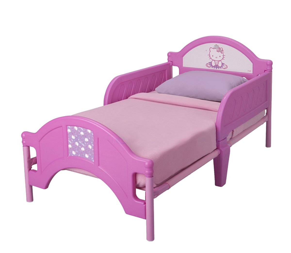 Ein Kinderbett mit Motiv der „Hello Kitty“ für alle kleinen Prinzessinnen. Das Bett ist niedrig und daher für Kinder leicht zugänglich. Das Kopf- und Fußende, und die Seitenteile sind aus einem sehr widerstandsfähigen, gehärteten Kunststoff hergestellt. Das Bett hat einen Stahlrahmen, welcher eine ausreichende Stabilität gewährleistet.