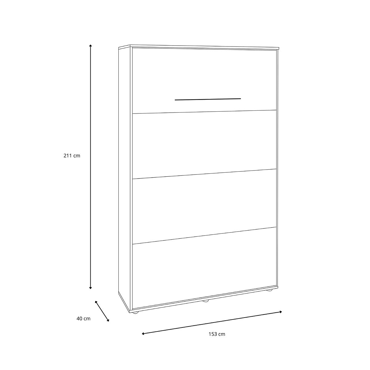 Das Modell VERTO ersetzt perfekt ein traditionelles Bett, bietet Komfort und zusätzlichen Raum während des Tages. Nach dem Schließen wird es zu einer minimalistischen Wandkonstruktion und sein leichtes und sicheres Mechanismus erleichtert die tägliche Nutzung. Es passt hervorragend in ein Studio, Studentenwohnheim, Büro, Schlafzimmer oder Wohnzimmer. Hergestellt aus strapazierfähiger Möbelplatte und in vielen Größen und Farben erhältlich, ermöglicht es die Anpassung an verschiedene Arrangements. Durchdachte Details und solide Konstruktion gewährleisten, dass die Möbel dem täglichen intensiven Gebrauch standhalten. Die Farben des Produkts können je nach Bildschirmeinstellung leicht variieren.