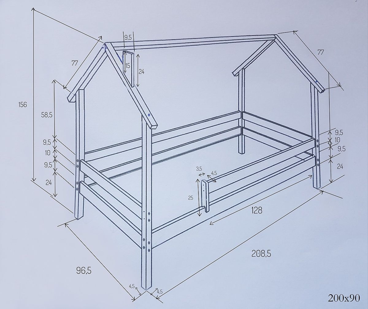 Hausbett ohne Schublade (Stauraum) - ideal für ein Kind. Unter dem Bett ist freier Platz, den Sie nach Ihren Vorstellungen nutzen können.