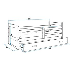 Einfaches weiß-graues Rocky Kinderzimmerbett mit Schublade und Sicherheitsstange. Eigenschaften: - S Barriere ist universell einsetzbar. Während der Montage .. mehr