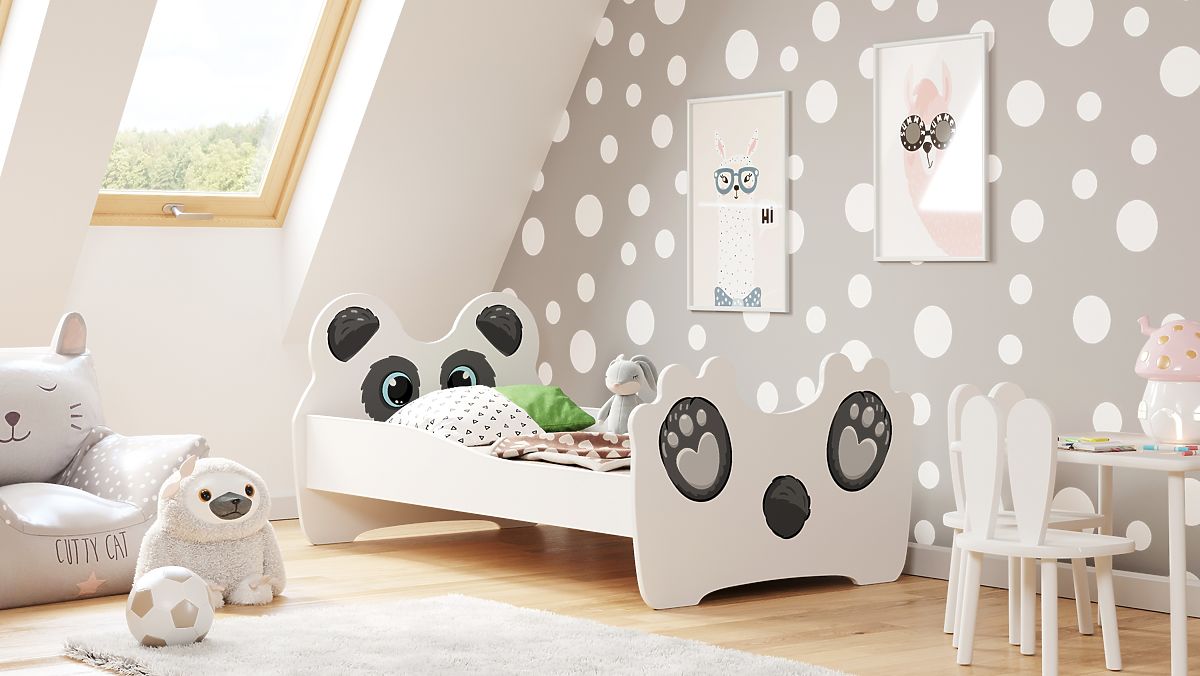 Das Kinderbett mit dem niedlichen Pandadruck ist die ideale Lösung für kleine Liebhaber von Märchenmotiven. Das niedliche Muster am Kopf- und Fußteil des Bettes macht dieses Möbelstück nicht nur zu einem Schlafplatz, sondern auch zu einer außergewöhnlichen Dekoration des Kinderzimmers. Sanfte Farben und das märchenhafte Motiv bringen eine fröhliche Atmosphäre in den Raum, die sowohl Entspannung als auch kreatives Spielen fördert.
