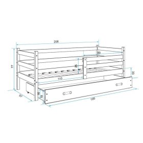 Einfaches Bett Erik fürs Kinderzimmer, in grauer Farbe mit Schublade und Rausfallschutz. Eigenschaften: - Universaler Rausfallschutz, Sie selbst bestimmen .. mehr