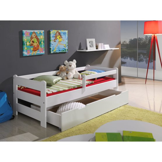 Das weiße Kinderbett Woody mit Schutzgitter gehört zu den bewährten Stücken der Kindermöbel für das Kinderzimmer. Weiße Farbe, massives Kiefernholz, beidseitiges Schutzgitter. Dies sind die Vorteile, die auch Ihnen dieses Bett gefallen lassen. Gleichzeitig haben Sie die Möglichkeit, eine Variante mit oder ohne Schublade zu wählen.