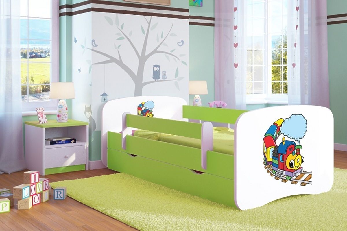 Hier ist ein Bett für alle kleinen Lokführer. Das Kopf- und Fußteil haben eine aufgedruckte Lok und der Rest des Bettes ist in grüner Farbe. Das Kinderbett Ourbaby hat ein schönes zeitloses Design und ist für Mädchen und Jungs geeignet! Das Kinderbett ist sehr komfortabel, einfach zu montieren und sehr funktionell.