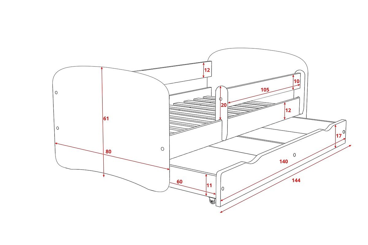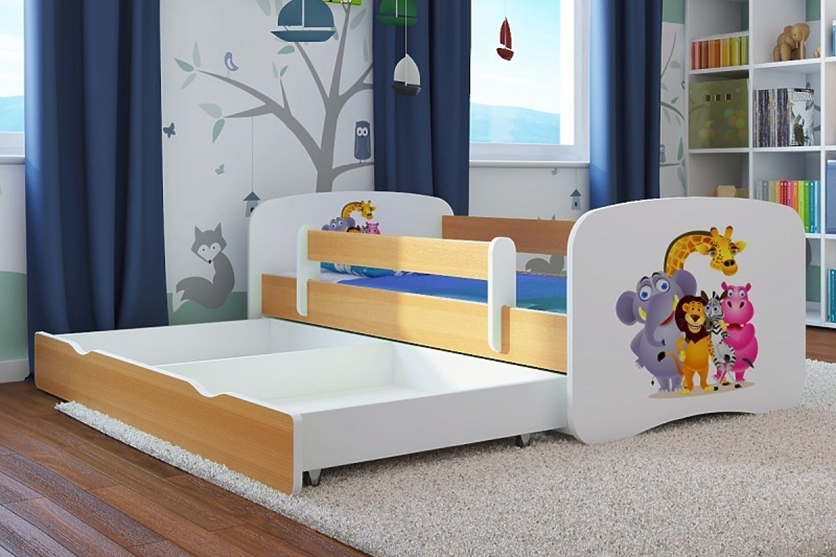 Alle Kinder mögen Zoo und Tiere. Dieses Kinderbett hat die Bettseiten in Buche und das Kopf- und Fußteil sind weiß mit einem Zoo-Motiv. Das Kinderbett Ourbaby hat ein schönes zeitloses Design und ist für Mädchen und Jungs geeignet! Das Kinderbett ist sehr komfortabel, einfach zu montieren und sehr funktionell.