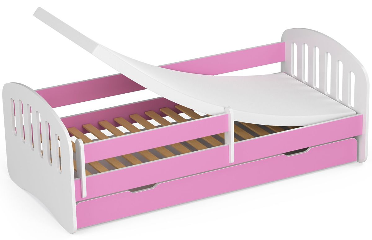 Kinderbett PLAY mit Lattenrost und Matratze. Komplettes Bett für Jungen oder Mädchen im Kinderzimmer. Farbe Rosa.