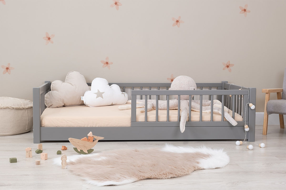 Banaby.at » Kinderbetten / Kinderbetten mit Rausfallschutz / Niedriges Montessori-Kinderbett Ourbaby - Grau
