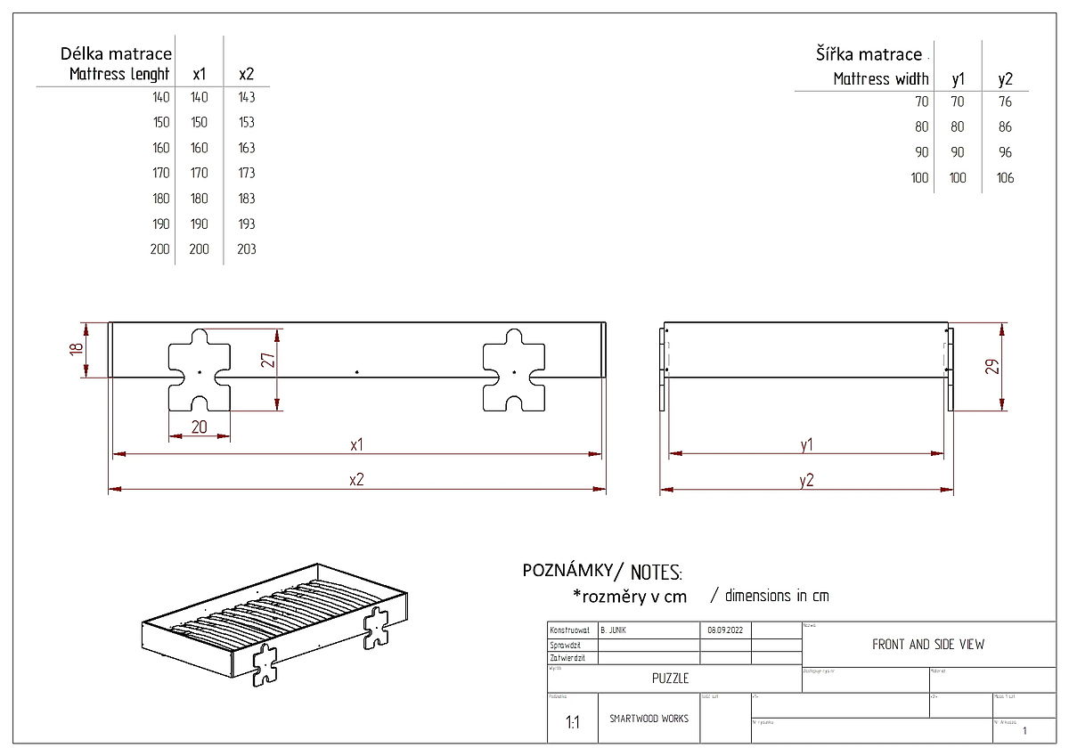 Wir empfehlen es für Kinder, die bereits selbstständig schlafen. Empfohlene Matratzenhöhe: 8-12 cm. Lattenrost ist im Bett enthalten. Flexibilität beim Hinzufügen von Rausfallschutz in Puzzleform. Möglichkeit, den Rausfallschutz nachzukaufen. Bettgestell - stabile Konstruktion, glatte und abgerundete Kanten.Tragfähigkeit: