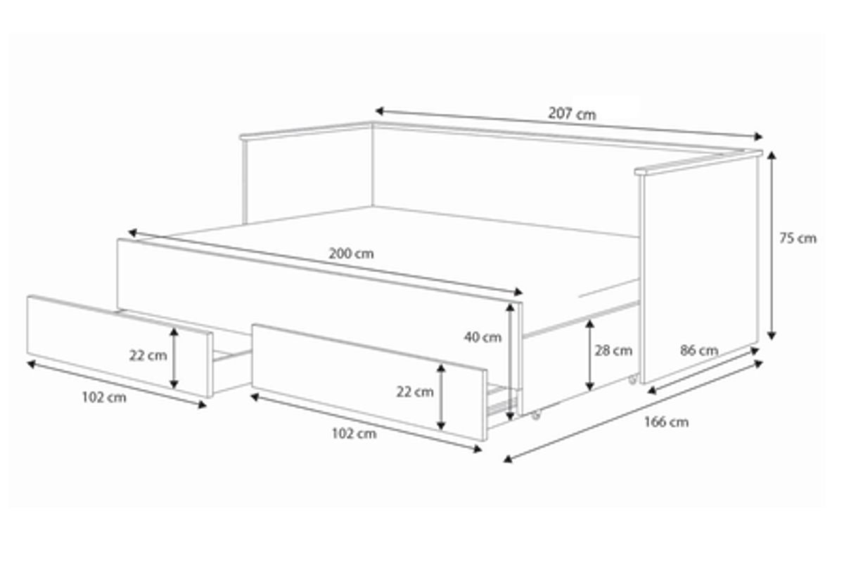Das ausziehbare Jugendbett HELIOS in Weiß ist die perfekte Kombination aus Eleganz und Funktionalität. Dank der Möglichkeit, es schnell in ein Doppelbett (160x200 cm) umzuwandeln, ist es die ideale Lösung sowohl für kleinere als auch größere Räume.