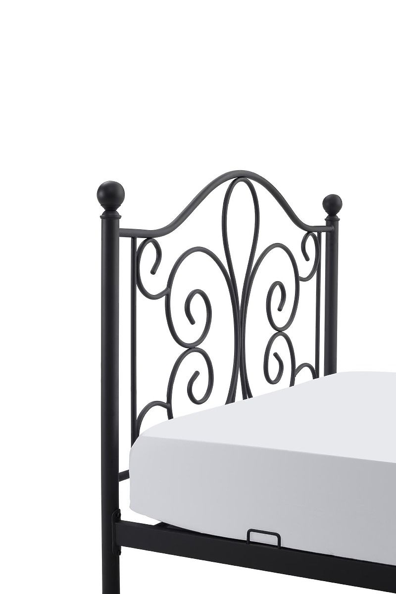 Das schwarze Metallbett Panama in der Größe 120x200 cm, elegant, modern und stilvoll, hat ein interessantes Design und eignet sich dank seiner Abmessungen nicht nur für ein Studentenzimmer , sondern auch für ein Schlafzimmer .