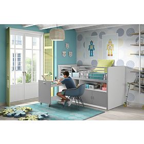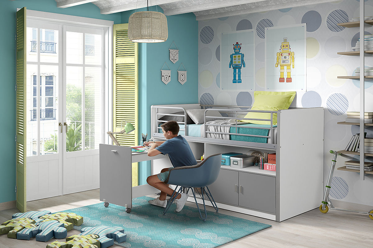 Ein multifunktionales Bett mit einem Schreibtisch von einem belgischen Hersteller, der Möbel aus den besten Materialien liefert und die EU-Standards für die Sicherheit Ihrer Kinder voll und ganz erfüllt.