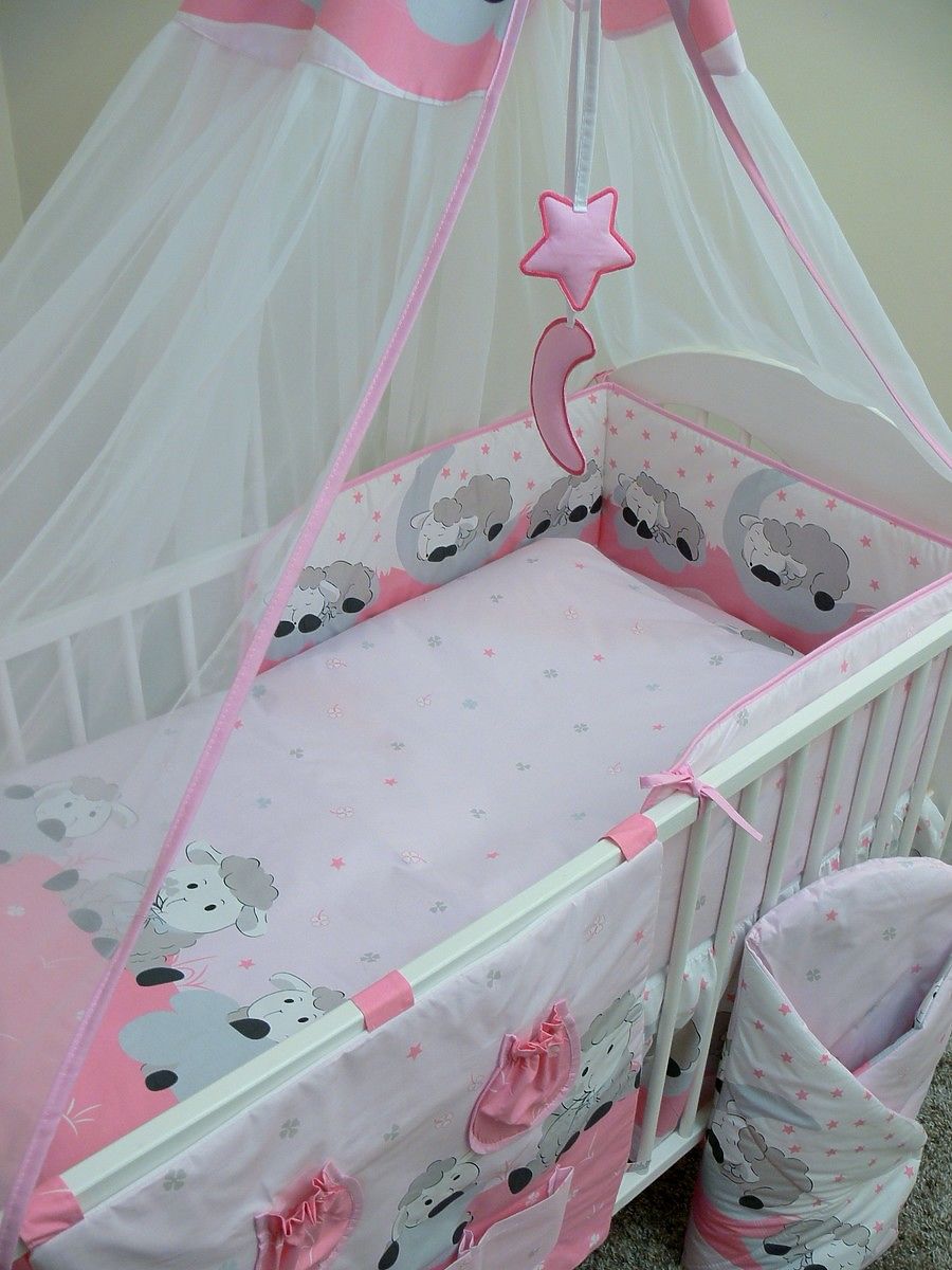 Banaby.at » Bettwaren / Kinderbettwäsche / Bettwäsche-Sets für Babybettchen / Baby-Bettwäsche-Set 120x90cm LÄMMCHEN - pink