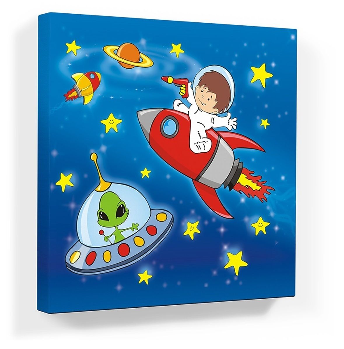 Dekorieren She das Kinderzimmer schöne Bilder, die auf das Kinderzimmer und fröhliche Atmosphäre bringen. Kinder Universe Bild Kinder in das Abenteuer von Raum zu übertragen. Dank Muster, abwechslungsreiche und lebendige Farben, wird das Bild für alle, Eltern und Kinder durch Alter ansprechen. S Bilder werden mit Sonderfarben gedruckt und auch für Lumb Verwendung hochwertiger Leinwand. Dadurch wird sichergestellt, dass das Bild in hoher Auflösung. S Leinwand ist auf einen Rahmen gespannt, die 2 cm dick ist. S Seiten sind auch Bild gedruckt, wodurch dreidimensionale Bild-Effekt zu gewinnen.