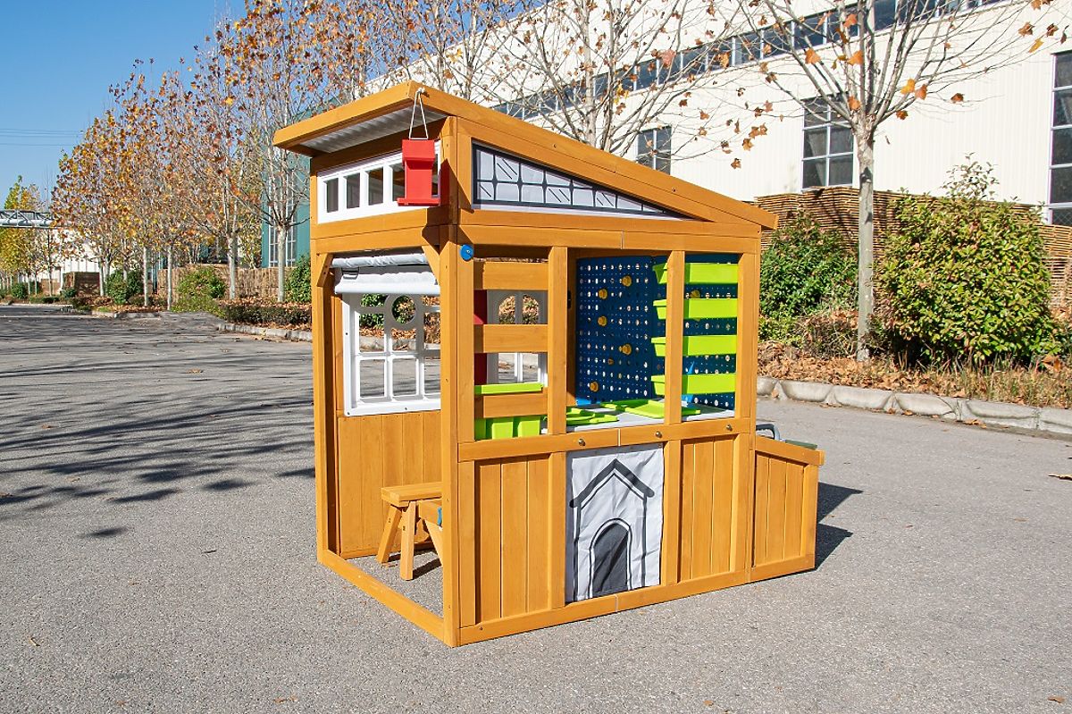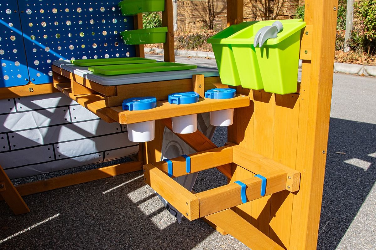 Geben Sie Ihrem Kind Raum zum Entdecken, Konstruieren und Gestalten. Dieses innovative Holzspielhaus fördert Kreativität, Selbstständigkeit und Fantasie im täglichen Spiel. Mit seinem schrägen Dach erinnert es an einen kleinen Geräteschuppen und bietet eine Reihe durchdachter Spiel- und praktischer Elemente. Das Haus ist mit einem rollbaren "Garagentor" mit Griff, einer Steckwand und einem erhöhten Innentisch mit Arbeitsplatte für Handarbeiten ausgestattet. Es fehlen auch nicht Ablagefächer in verschiedenen Größen, die helfen, Ordnung zu halten. Der Außenbereich kann auch als Sitzbank oder Arbeitsfläche genutzt werden. Die Außenansicht des Hauses wird durch ein Vogelhäuschen und einen Fensterkasten ergänzt, die das Spiel in Kontakt mit der Umgebung fördern. Das Haus bietet auch traditionelle Türen und einen kleinen Eingang für Haustiere, wodurch die Spielmöglichkeiten und die Einbeziehung der ganzen Familie erweitert werden. Inhalt des Hauses: traditionelle Türen und ein kleiner Eingang für Haustiere, Garagentor mit Griff zum Öffnen und Schließen, Tisch mit Stauraum im unteren Bereich, bewegliche Holzbank, Blumenkästen, Becher, Vogelhäuschen, Stauraum, Zubehör für die Steckwand. Hauptmerkmale: fördert die Entwicklung sozialer Fähigkeiten, modernes Design, hochwertige und detaillierte Verarbeitung, aus Holz gefertigt, geeignet für das Spiel mehrerer Kinder. Informationen für B2B-Partner: Dropshipping innerhalb der Tschechischen Republik!