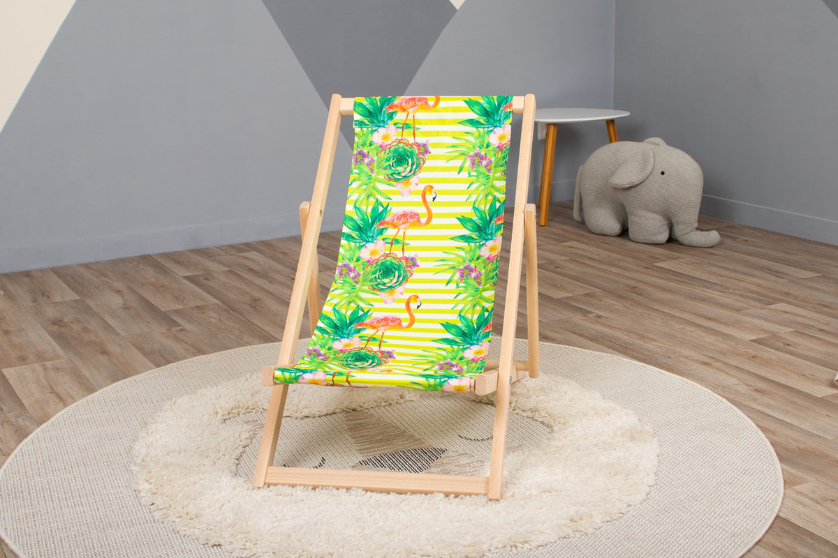 Banaby.at » Kindermöbel / Gartenmöbel für Kinder / Kinder-Gartenstühle / Kinderstrandkorb Flamingos und tropische Blumen