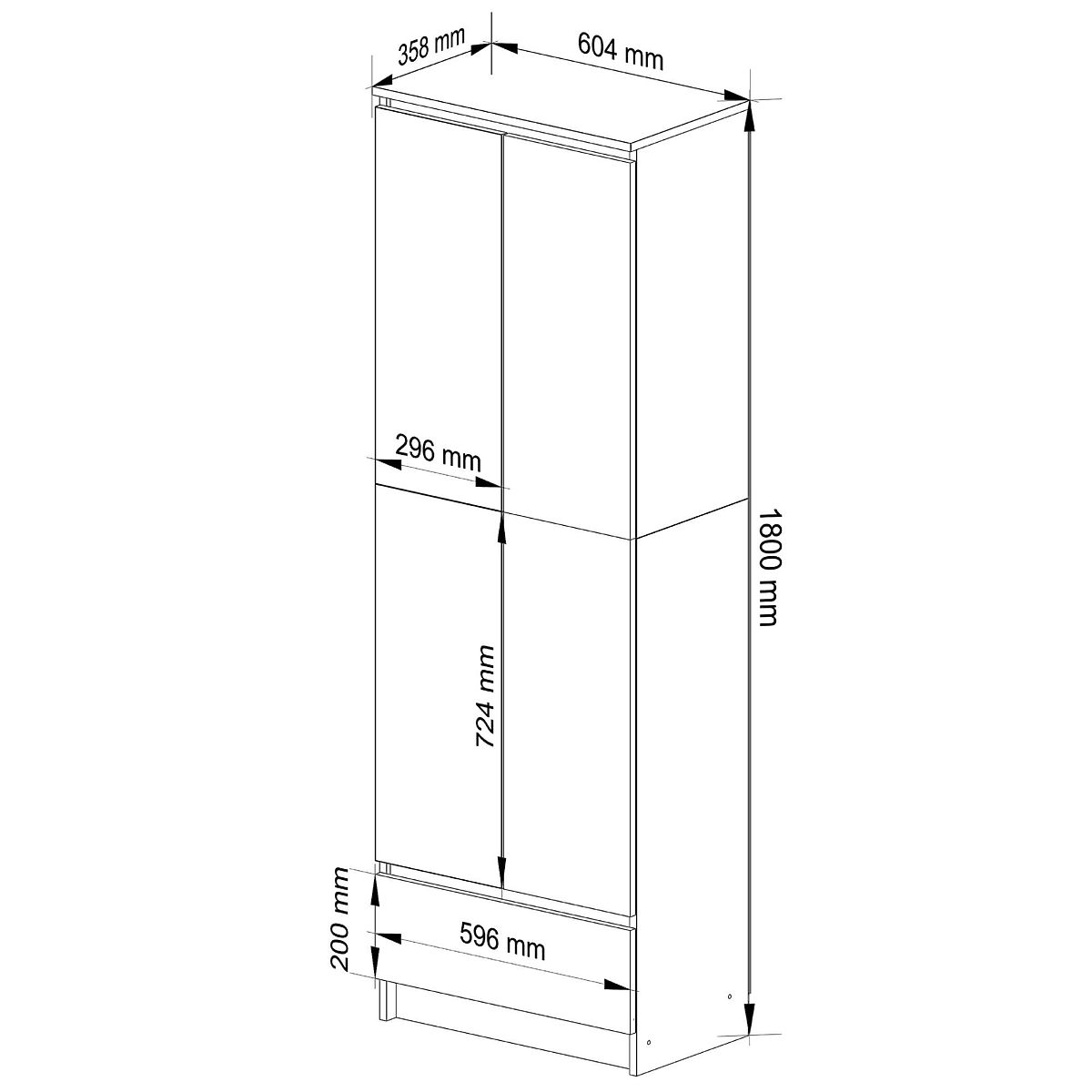 Der Schrank ist mit einer matten Oberfläche überzogen. Er ist zur Selbstmontage bestimmt. Sein Gewicht beträgt 38 kg. Die Verpackung enthält eine Anleitung und eine 24-monatige Garantie.