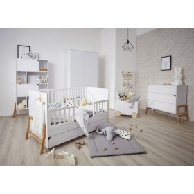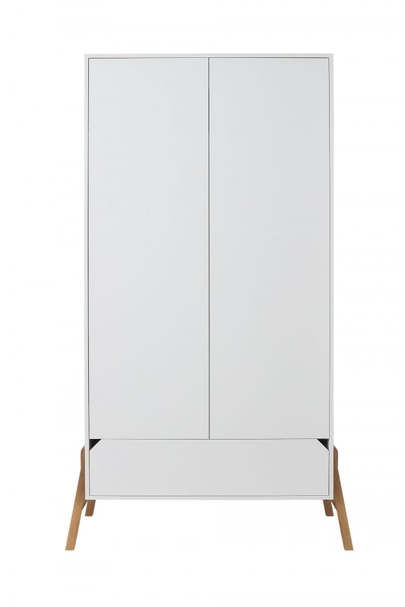 Die Beine sind aus Eichenholz. Der gesamte Kleiderschrank ist sehr pflegeleicht, was Sie im Kinderzimmer zu schätzen wissen. Es ist ein geräumiger zweitüriger Kleiderschrank, in dem Sie alle Sachen Ihrer Kinder aufbewahren können.