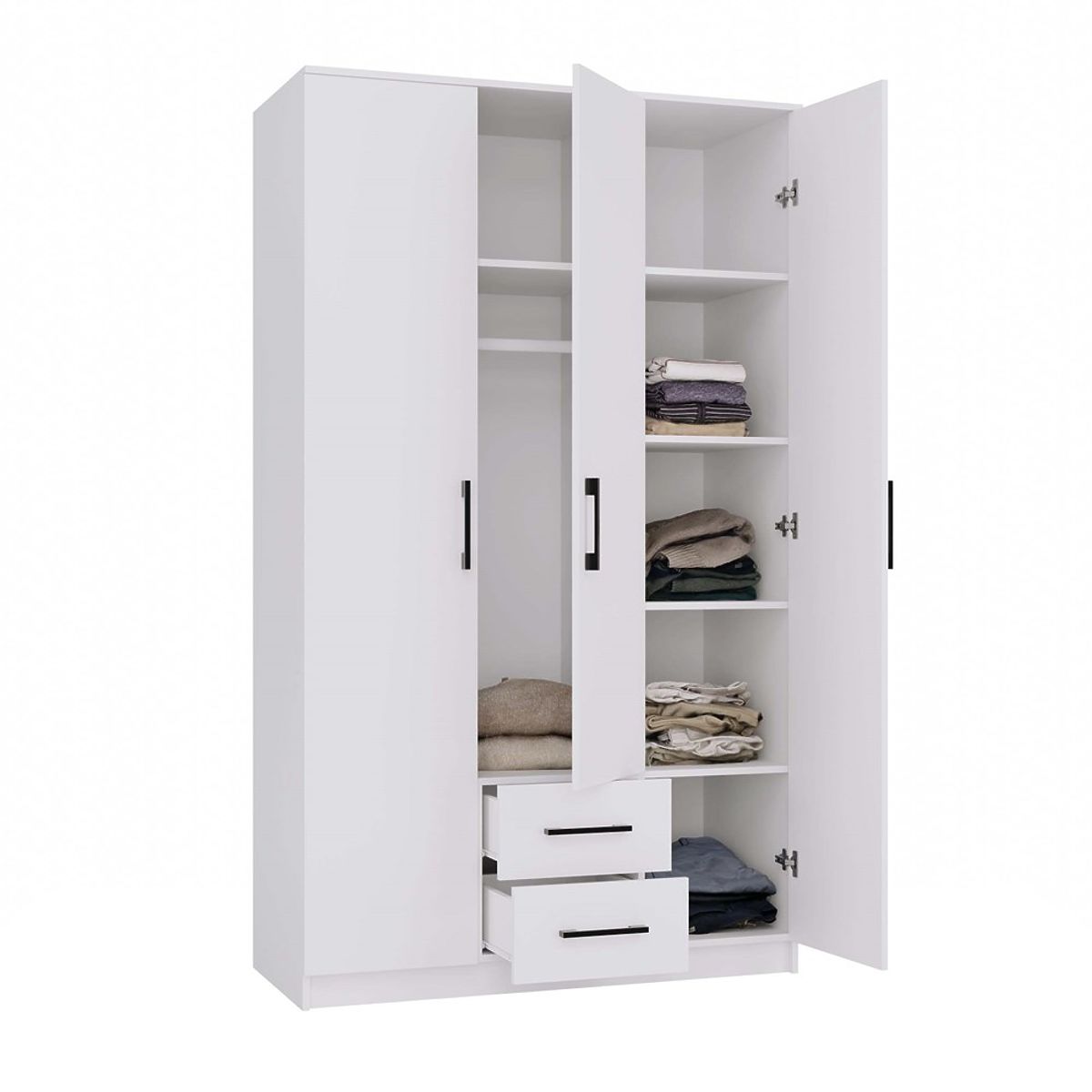 Der Schrank ROMANA 120 ist eine perfekte Kombination aus Ästhetik, Funktionalität und kompaktem Design. Dank der durchdachten Innenaufteilung bietet er eine komfortable Organisation der Garderobe, und seine universelle weiße Farbe ermöglicht eine einfache Integration in das Schlafzimmer, Kinderzimmer, Büro oder den Flur.
