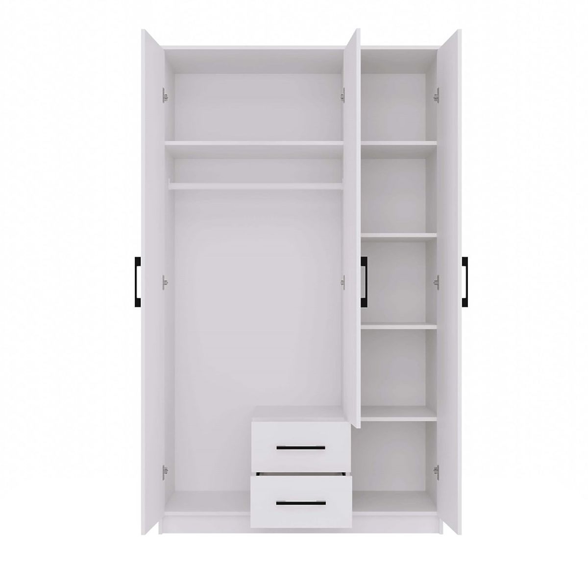 Moderner weißer Schrank mit 3 Türen und 2 Schubladen. .. mehr