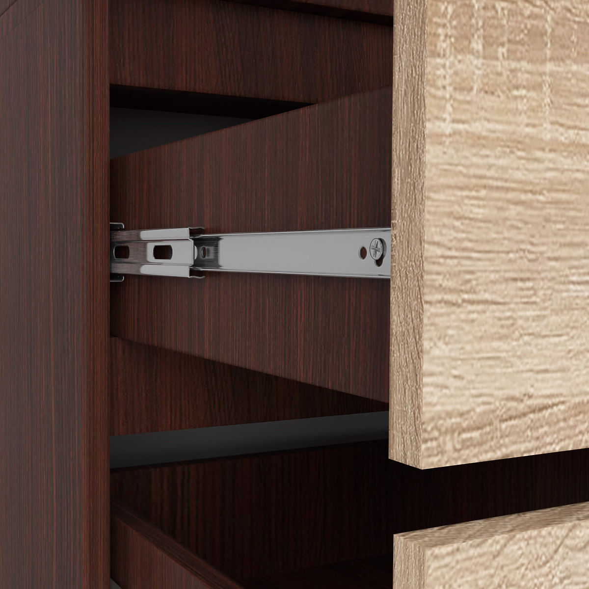 Schrank mit zwei Türen und zwei Schubladen in Wenge und Sonoma. .. mehr