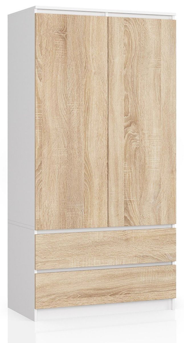 Der zweitürige Schrank S 90 cm, erhältlich in Weiß oder Sonoma-Eiche, ist ein äußerst praktisches und gleichzeitig vielseitiges Möbelstück. Er bietet vielfältige Einsatzmöglichkeiten, zumal er zusätzlich mit zwei recht geräumigen Schubladen ausgestattet ist. Dank seiner Funktionalität kann dieses Produkt erfolgreich als Teil der Ausstattung nicht nur im Schlafzimmer, sondern auch in anderen Räumen unserer Wohnungen, wie z.B. im Flur, Wohnzimmer, Studentenwohnheim, Büro oder Arbeitszimmer, platziert werden.