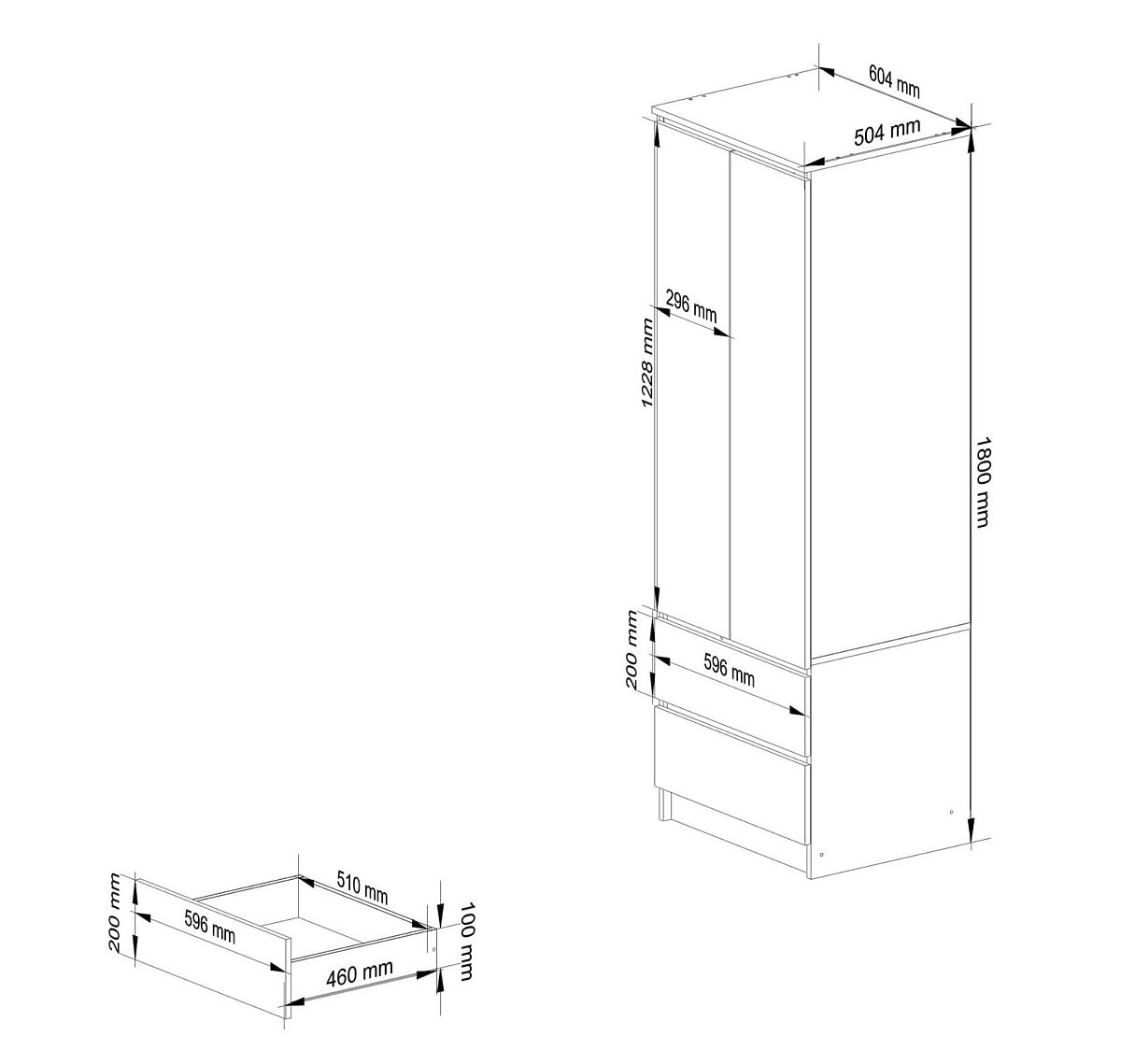 SCHRANK STAR K60 2 TÜREN, 2 SCHUBLADEN