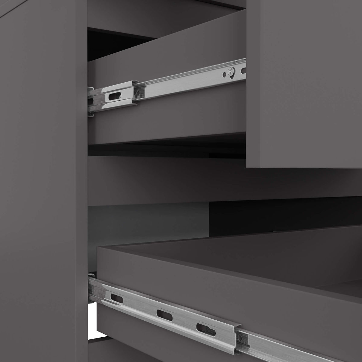 - Schubladen laufen auf Metallkugelführungen der renommierten Firma GTV- Kanten mit ABS-Kante für hohen Schutz gegen Beschädigungen