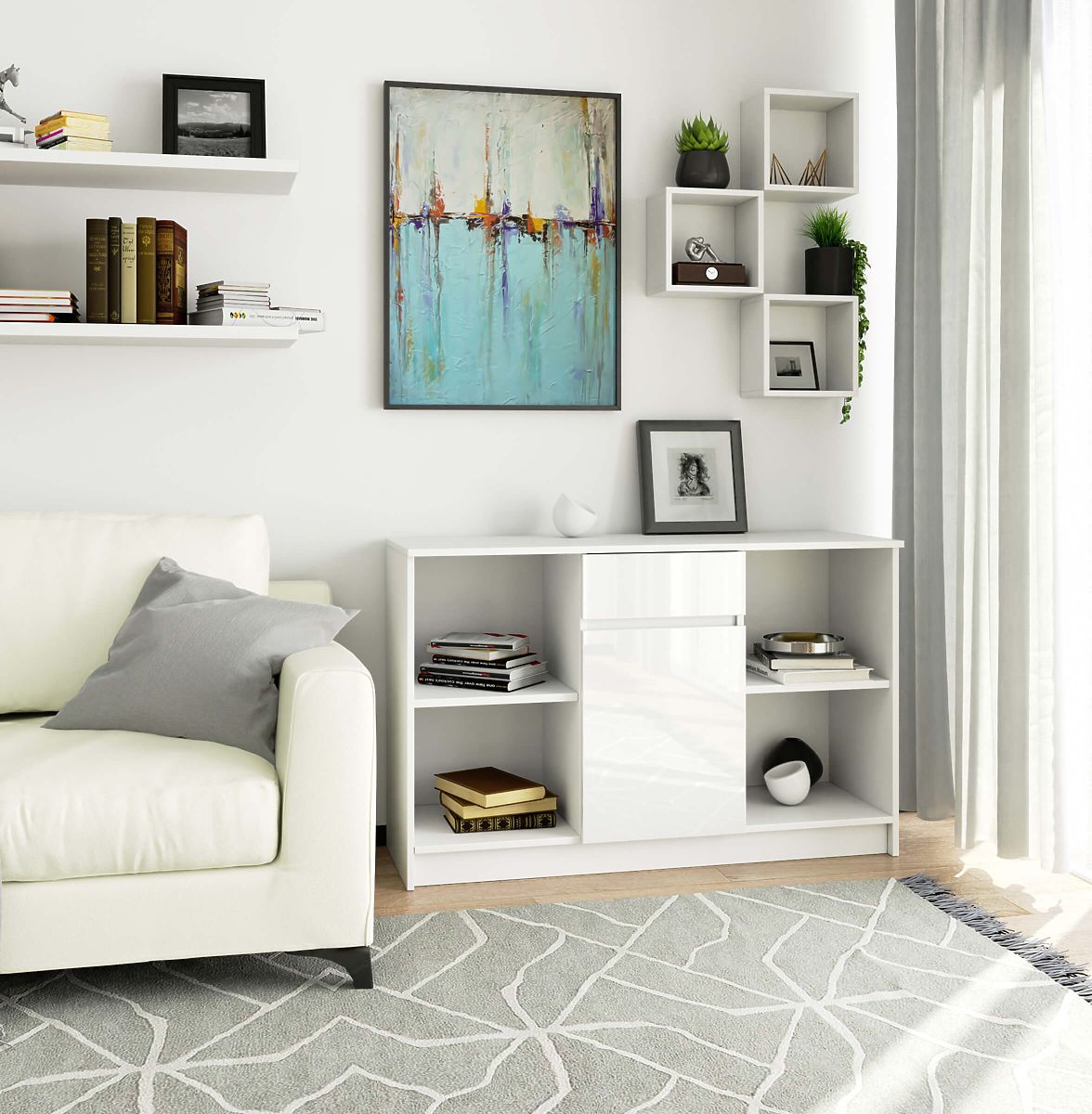 Praktische Kommode mit Schublade und Tür in Weiß Hochglanz. .. mehr