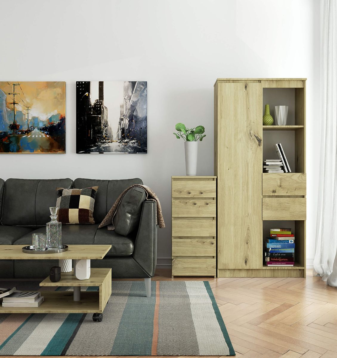 - Elegantes Aussehen - die Kommode ist schlicht in der Form und zeichnet sich durch die stilvolle Farbe Eiche Artisan aus,