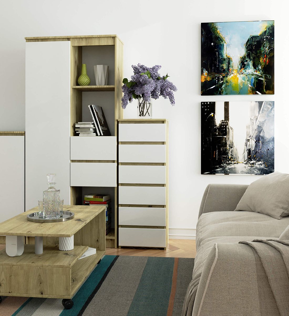 Kommoden sind ein beliebter Möbeltyp, der neben dem Bett platziert wird. Auf der Platte befindet sich meist eine Lampe, während im Inneren Gegenstände aufbewahrt werden, die Entspannung und Schlaf erleichtern. Personen, die eine elegante Kommode suchen, sollten auf die Kommode CL6 40 cm in der Farbe Eiche Artisan mit weißen Fronten achten. Sie wird in jedem Schlafzimmer schön zur Geltung kommen. Sie kann auch im Kinderzimmer platziert werden.